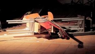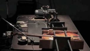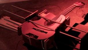 Eine Akustikgitarre wird sehr langsam zwischen zwei Metallplatten zerquetscht. Die entstehenden Klänge werden mit Hilfe eines modularen Synthesizersystems bearbeitet. Letzteres ist so programmiert, daß die Klänge der Gitarre Klangsynthesen anregen, welche durch Zufallsalgorithmen angereichert werden. Die sensibel justierten Parameter werden durch mich live den Ereignissen angepasst. Dieser Eingriff ist aber ein kompositorischer/ gestalterischer Eingriff in eine selbstgenerierende Installation. Er soll in der fortlaufenden Entwicklung der Idee durch optimierte Programmierung abgeschafft werden. Performer in dieser Installation sollte die Gitarre sein, die ihr letztes Konzert gibt und damit emotionaler Träger des Geschehens ist.